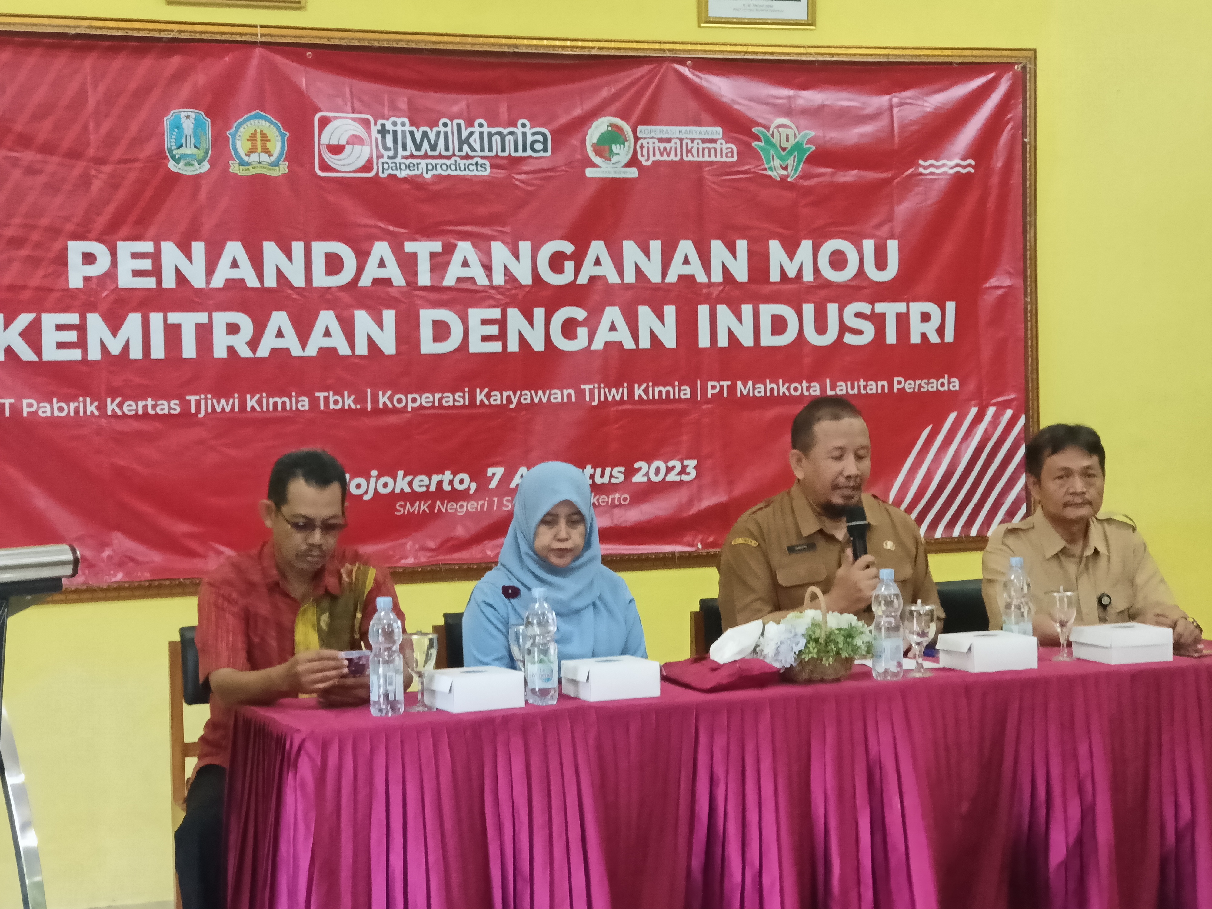 Sementara itu, Wiwien Tresnawati, Perwakilan dari PT Tjiwi Kimia Tbk mengatakan Mou dengan SMKN 1 Sooko ini bagian dari keseriusan PT Tjiwi Kimia dalam mendukung program pendidikan vokasi link and match yang digagas Kememterian Perindustrian.