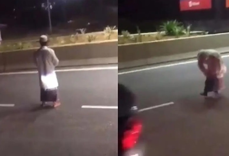 Dalam video yang beredar dan viral, pria berbaju putih itu tampak khusyuk shalat meski banyak kendaraan seliweran di dekatnya. Pria yang tengah shalat di tengah jalan itu lantas menjadi tontonan warga.