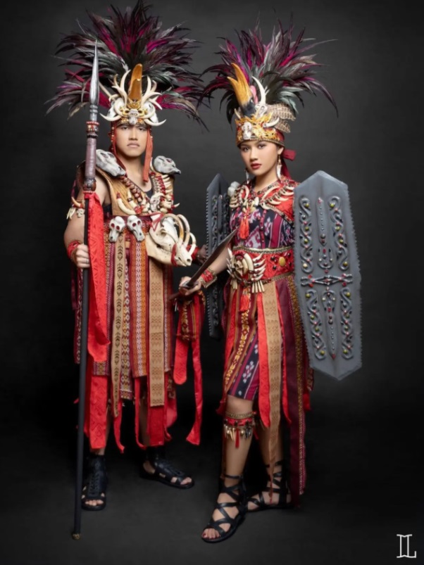 Keduanya mengenakan busana perang khas suku Minahasa Sulawesi Utara yang penuh filosofi. Mereka pun terpilih sebagai salah satu pemenang best costume dan mendapat hadiah sepeda.