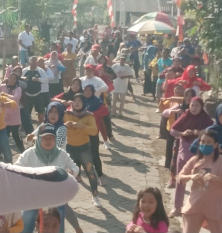 SURABAYAPAGI.com, Sidoarjo - Warga RT 06 dan RT 08 RW 02 Desa Dukuhsari Kecamatan Jabon Kabupaten Sidoarjo tampak kompak dan guyub meramaikan gerak jalan sehat dilanjut senam aerobik minggu pagi (20/08/2023). Tak hanya senam, berbagai aneka lomba dan kegiatan pun turut dimeriahkan di momen HUT RI ke-78 tahun 2023 ini.