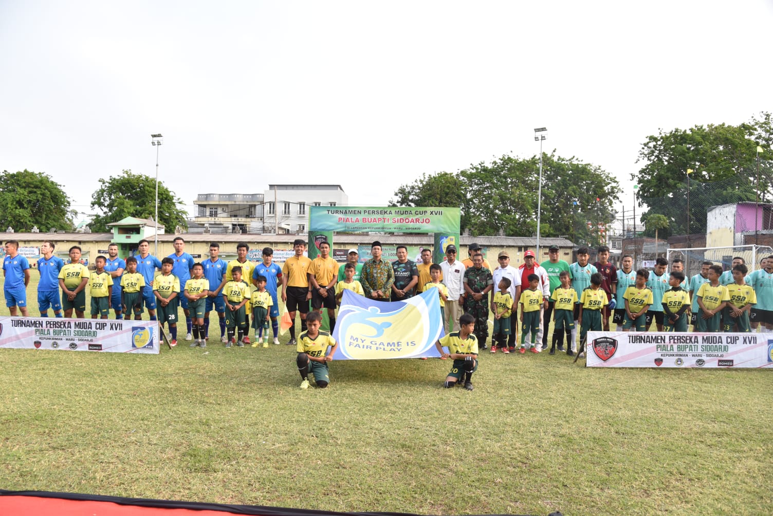 SURABAYAPAGI.com, Sidoarjo - Turnamen Perseka Muda Cup XVII Piala Bupati Sidoarjo digelar di lapangan Sepakbola Perseka Muda Desa Kepuh Kiriman Kecamatan Waru, Minggu (20/08/2023).