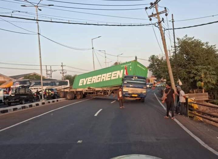 SURABAYAPAGI.com, Sidoarjo - Akibat tidak mematuhi rambu Lalu lintas, truk Kontainer yang terlepas mengakibatkan arus lalu lintas macet dan menutupi jalan raya arah Mojokerto - Surabaya, Jumat (25/08/2023) pagi sekitar jam 04.00 WIB.