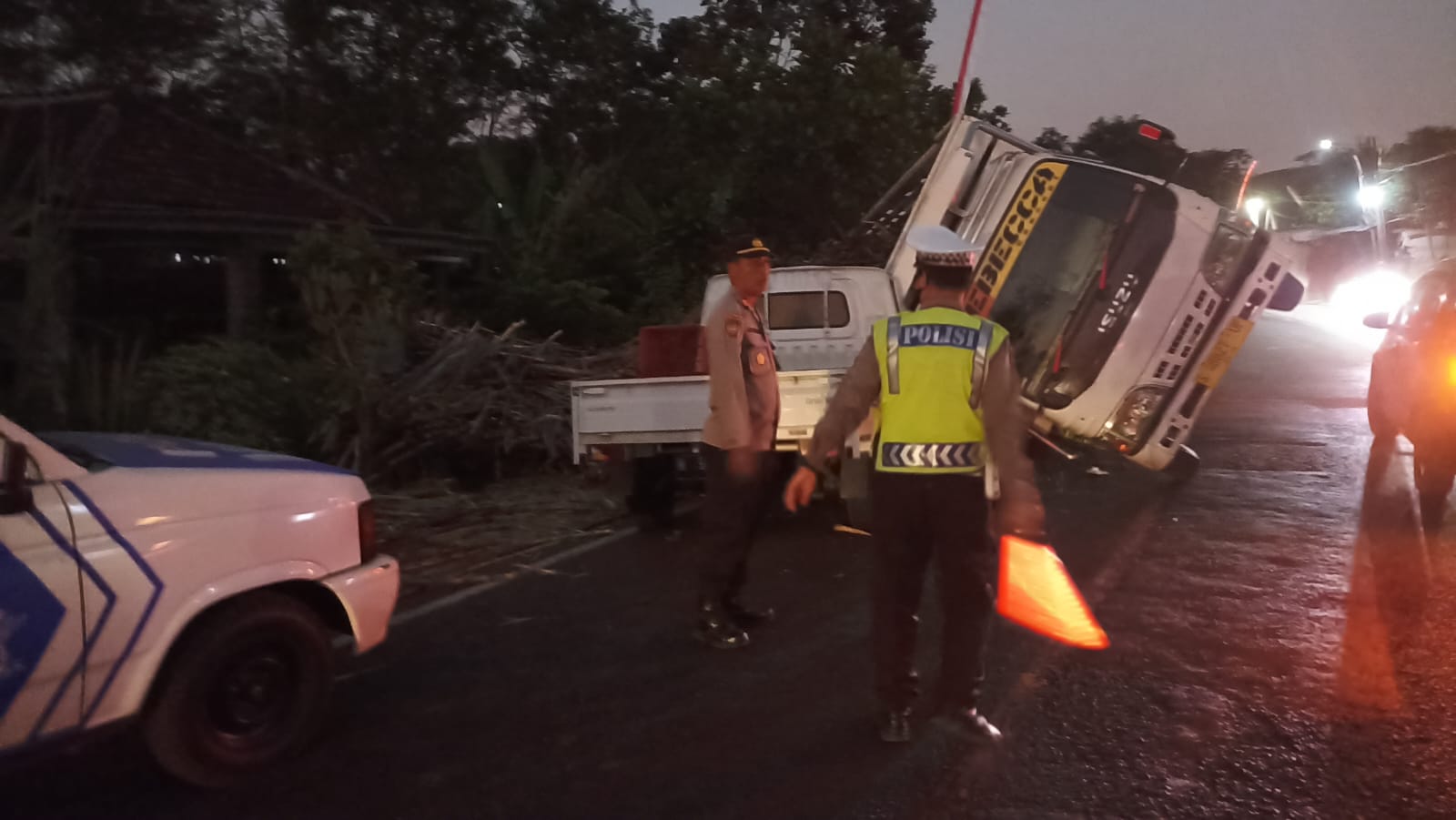 Iptu Hery Irianto menjelaskan kronologi kejadian, saat itu Truk Isuzu nopol N 8827 UP bermuatan tebu yang dikemudikan Oggi Kufdikul Anam (28) warga Desa Petungsewu Kec Wagir Kabupaten Malang melaju dari arah timur menuju Blitar memasuki jalan umum Desa Kalilegi yang posisi jalan menikung tajam.