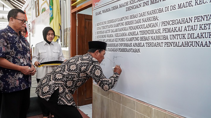 "Tingginya kasus narkoba di Desa Made menjadi keprihatinan bagi Pemkab Lamongan. Dibentuknya kampung bebas narkoba merupakan upaya Pemkab Lamongan bersama Polres Lamongan dalam menciptakan lingkungan yang kondusif. Disamping itu kami tidak hanya melihat berdasarkan angka saja, namun kami juga melihat dampak dari yang disebabkan para tersangka terutama pada pertahanan keluarga," tutur Bupati Lamongan Yuhronur Efendi atau usai menandatangani kesepakatan Desa Made sebagai kampung bebas narkoba.
