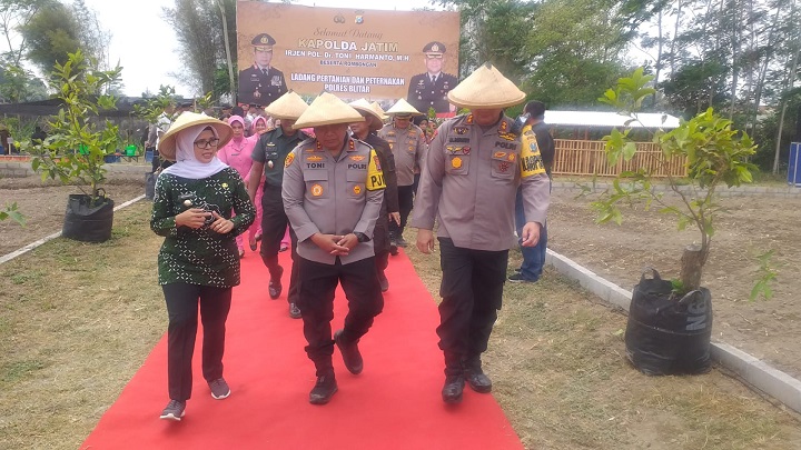 SURABAYAPAGI.COM, Blitar - Kapolda Jawa Timur Irjen Pol Toni Harmanto dalam kunjungan kerjanya di wilayah hukum Polres Blitar pada Kamis (14/9) siang. Kali ini kunjunganya khusus membuka lahan kosong seluas 16.605 meter yang terletak di kelurahan Talun Kecamatan Talun Kabupaten Blitar yang di peruntukkan pertanian dan peternakan.