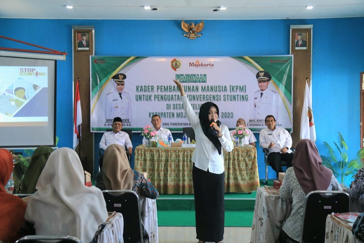 SURABAYAPAGI.COM, Mojokerto - Pembinaan konvergensi stunting kepada Kader Pembangunan Manusia (KPM) di tingkat desa terus digeber. Bupati Mojokerto Ikfina Fahmawati berharap para KPM dapat menyukseskan program konvergensi stunting ini dengan terus melakukan pendampingan dari remaja putri (Rematri) hingga balita yang ada di wilayahnya.