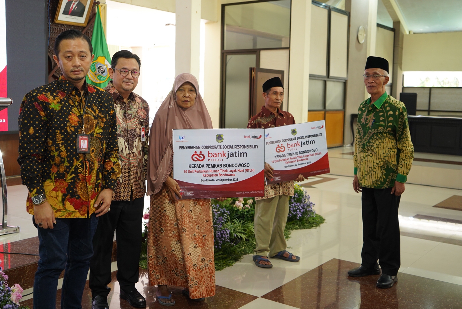 SurabayaPagi, Bondowoso - Dalam rangka membantu pengentasan kemiskinan di Kabupaten Bondowoso, PT Bank Pembangunan Daerah Jawa Timur Tbk (Bank Jatim) telah resmi memberikan bantuan Corporate Social Responsibility (CSR) kepada Pemerintah Kabupaten Bondowoso berupa rehabilitasi 10 unit Rumah Tidak Layak Huni (RTLH).