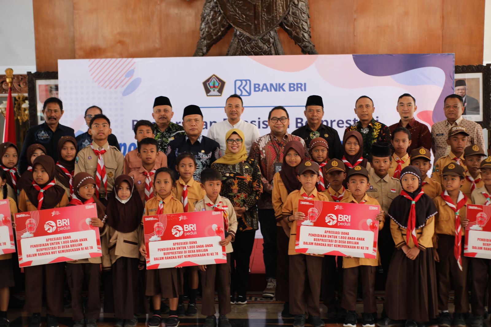 SURABAYAPAGI.COM, Blitar - Pendopo Ronggo Hadinegoro Kabupaten Blitar tadi pagi ( Jumat 22 September 2023) pukul 08.00 tampak semarak kedatangan bocah kecil kecil berseragam Merah Putih pertanda mereka adalah para siswa/siswi SD (Sekolah Dasar), seiring mendapat undangan dari Pemerintah Kabupaten Blitar, kedatangannya yang didampingi oleh Kepala Sekolahnya dan beberapa guru pembinanya dan orang tuanya tersebut untuk menerima Bea Siswa dari CSR (Corporate Social Responsibility) dari Kantor BRI Cabang Blitar, sedang turut hadir Sekda Kab.Blitar, Kadin Pendidikan Asisten 1, Staf Ahli, Kepala Bappeda dan Kepala BPKAD, selain 3 Camat.