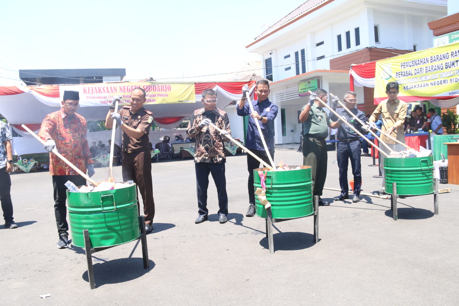 Pemusnahan dilakukan oleh Bupati Sidoarjo Ahmad Muhdlor Ali beserta jajaran Forum Komunikasi Pimpinan Daerah (Forkopimda) Kabupaten Sidoarjo.