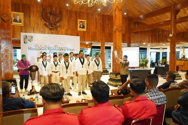 SURABAYAPAGI.COM, Kediri - Bupati Kediri Hanindhito Himawan Pramana menyampaikan tiga pesan kepada organisasi kemahasiswaan Himpunan Mahasiswa Islam (HMI) Cabang Kediri saat acara pelantikan pengurus baru periode 2023-2024 di Pendopo Panjalu Jayati.