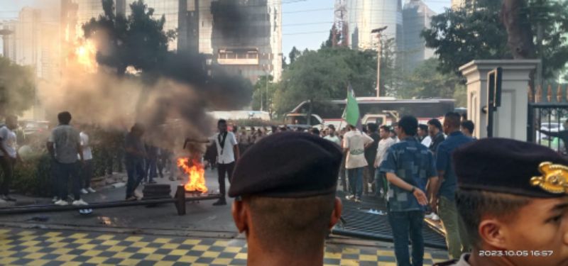 SURABAYA PAGI, Jakarta - Puluhan kader Himpunan Mahasiswa Islam (HMI) yang mengaku berasal dari HMI Jakarta Pusat Utara (Jakpustara), HMI Jakarta Timur (Jaktim) dan HMI Jakarta Raya menggelar aksi demonstrasi di depan Kantor Kementerian Investasi/Badan Koordinasi Penanaman Modal yang berada di jalan Gatot Subroto, Jakarta Pusat, pada Kamis (5/10/2023) sore.