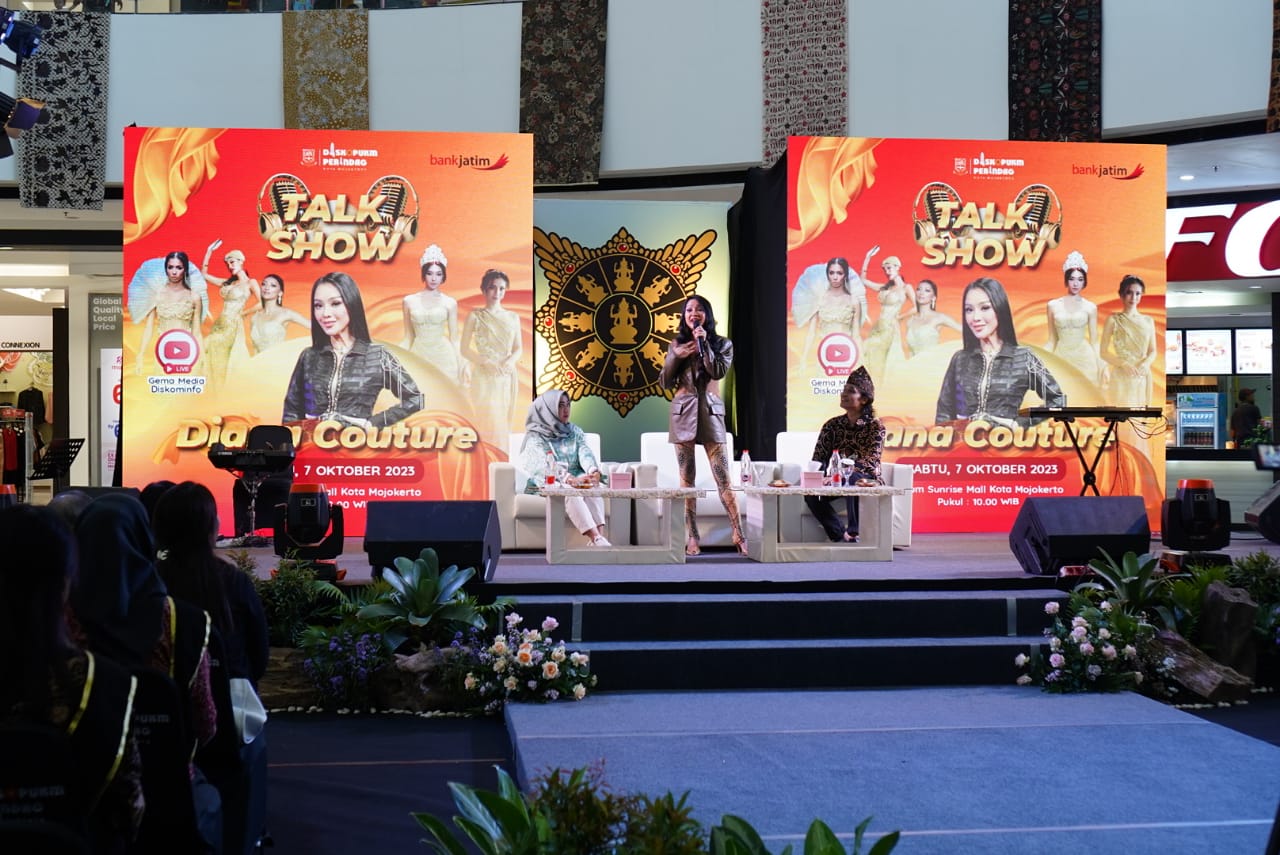 SURABAYA PAGI.COM, Mojokerto - Dinas Koperasi UKM Perindustrian dan Perdagangan (Diskopukmperindag) Kota Mojokerto sukses menyelenggarakan kegiatan talkshow with Diana Couture sang desainer kondang Indonesia.