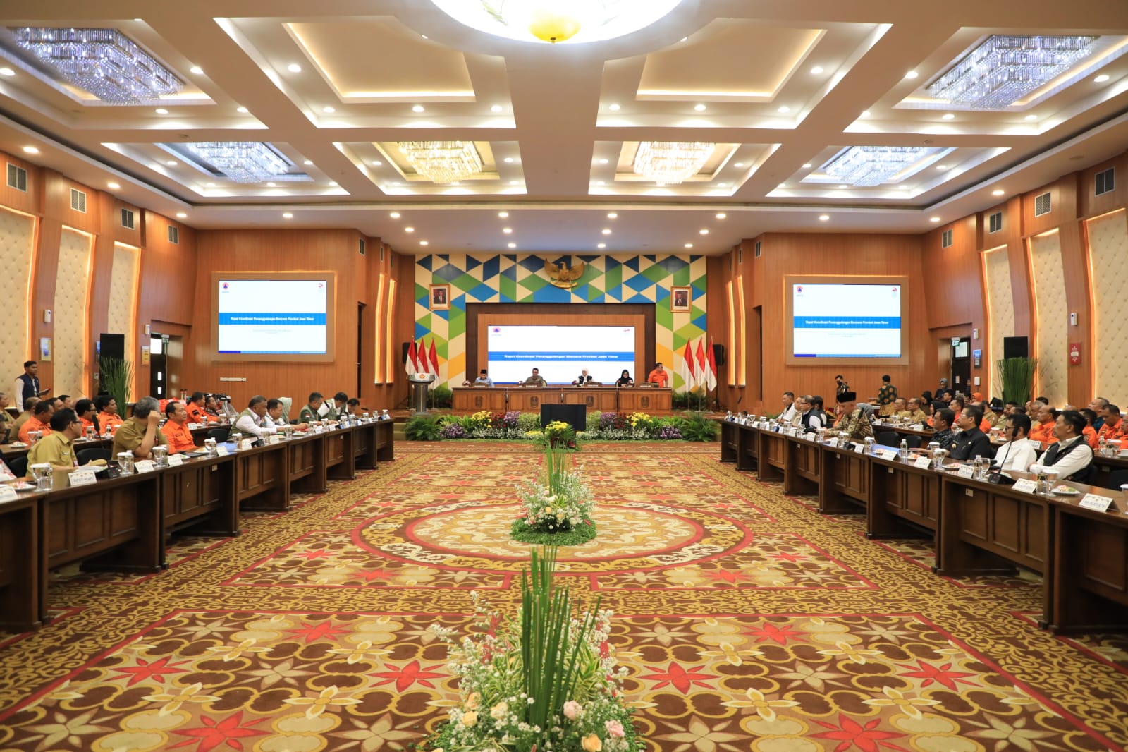 Rakor yang dipimpin secara langsung oleh Kepala Badan Nasional Penanggulangan Bencana (BNPB) Letjen TNI Suharyanto, S. Sos.,M.M, turut dihadiri Gubernur Jawa Timur Khofifah Indar Parawansa, anggota DPR RI Komisi 8 Ina Ammania dan Laksamana Madya TNI (Purn.) Moekhlas Sidik, M.P.A. dan Sekretaris Daerah (Sekda) Provinsi Jatim Adhy Karyono.