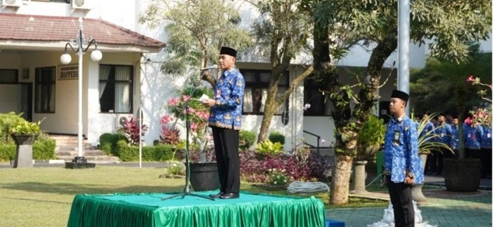 SURABAYAPAGI.COM, Lumajang - Pemerintah Kabupaten (Pemkab) Lumajang menggelar upacara peringatan HUT ke-78 Provinsi Jawa Timur, yang bertempat di Halaman Kantor Bupati Lumajang, Kamis (12/10/2023). Sekretaris Daerah Kabupaten Lumajang, Agus Triyono bertindak sebagai Inspektur Upacara.