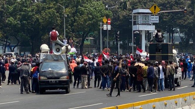 Massa dari dua kelompok yang demonstrasi di area Patung Kuda, Jakarta Pusat (Jakpus) telah membubarkan diri. Mereka bubar setelah mendapat kabar Mahkamah Konstitusi (MK) menolak gugatan uji materi terhadap UU Nomor 7 Tahun 2017 tentang Pemilu terkait batas minimal usia capres-cawapre.