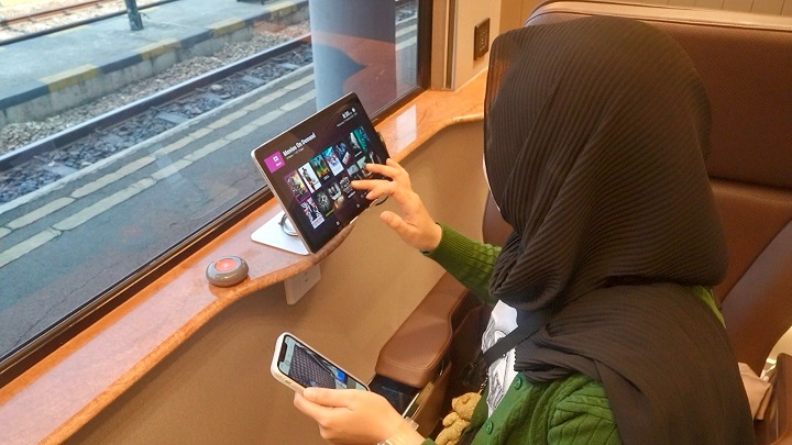 Ditambah kursinya, ada baki lipat yang bisa difungsikan untuk meja makan, meja kerja, sisi dekat jendela terdapat Train Onboard Infotainment System berisi aneka film populer, musik dengan berbagai genre, hingga kanal televisi nasional yang bisa dinikmati sepanjang perjalanan. Termasuk layanan makanan berupa hidangan pembuka, hidangan utama, hidangan penutup, serta aneka minuman dan berbagai layanan spesial lainnya.