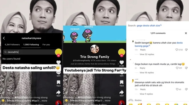 Hal itu terungkap melalui akun TikTok @caviarhold memperlihatkan tampilan following Instagram Desta yang sudah tidak ada nama Natasha Rizky disana. Sebaliknya Natasha Rizky juga sudah tidak mengikuti akun Instagram Desta.