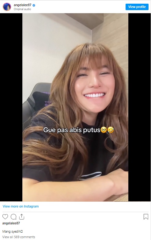 "Gue pas abis putus, Mang syedih" tulis Angela Lee dalam video yang dibagikan olehnya.
