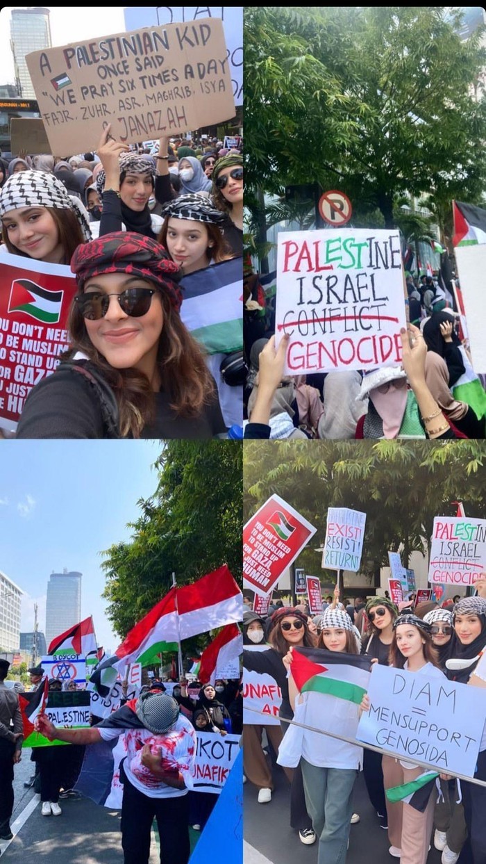 Aktris cantik Syifa Hadju diketahui sampai membawa poster dan bendera Palestina dalam aksinya membela Palestina hingga dirinya turun ke jalanan.