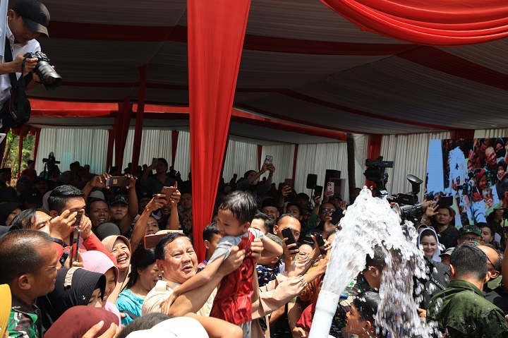 "Air sangat penting untuk kehidupan. Jadi dihemat, ditampung, dimanfaatkan berkali-kali," ujar Prabowo di Desa Suro.