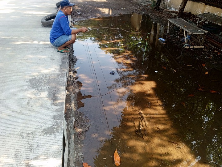 SURABAYAPAGI.COM, Jombang - Ada-ada saja kelakuan warga Desa Dukuhmojo, Kecamatan Mojoagung, Kabupaten Jombang, Jawa Timur. Mereka memancing ikan di kubangan pinggir jalan cor Jalan raya Dusun Mojolegi.