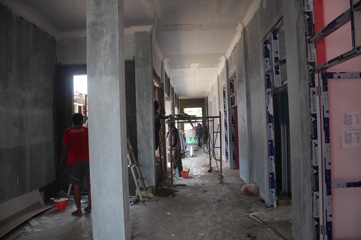 Pantauan di lokasi, nampak pekerjaan di lantai satu masih banyak yang kurang, pintu dan jendela belum terpasang. Selain itu, tembok bagian dalam belum dilakukan pengecatan. Lebih parah lagi, pekerjaan pada lantai dua. Sejumlah dinding belum diberi acian.