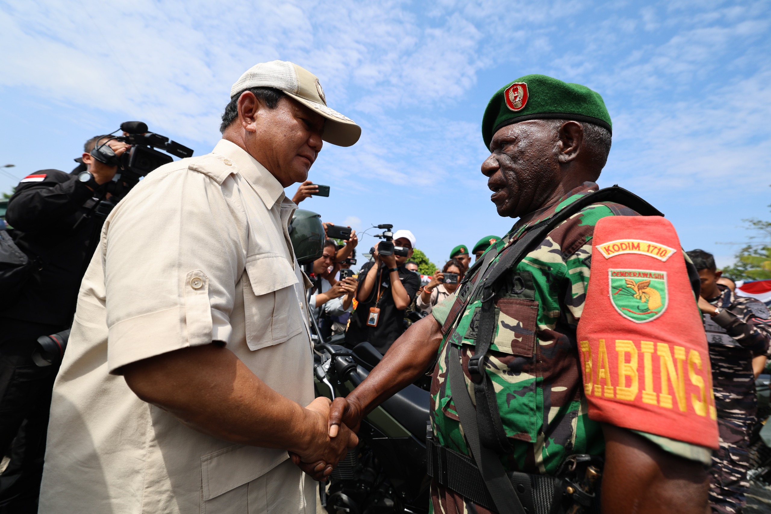 Pertemuan itu terjadi ketika Prabowo menyalami satu-persatu para Prajurit TNI saat kunjungan kerja di Makodim 1710/Mimika Papua dalam rangka penyerahan bantuan sepeda motor yang akan diberikan kepada para Prajurit TNI & Polri.