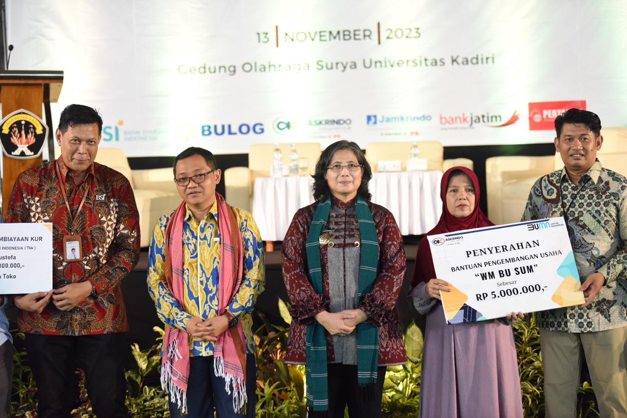 Dalam kesempatan ini, Pj Wali Kota Kediri juga meninjau stand UMKM yang dipamerkan. Ada pula penyerahan bantuan bagi pelaku UMKM.