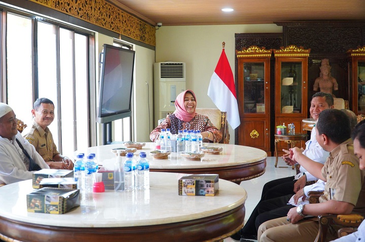 SURABAYAPAGI.COM, Mojokerto - Wali kota Ika Puspitasari melepas keberangkatan warga Kota Mojokerto pemenang undian umroh dalam Gebyar Hadiah Pajak Bumi dan Bangunan Perdesaan dan Perkotaan (PBB-P2) di Ruang Sabha Pambojana, Rumah Rakyat Kota Mojokerto, Senin (20/11/2023) siang.