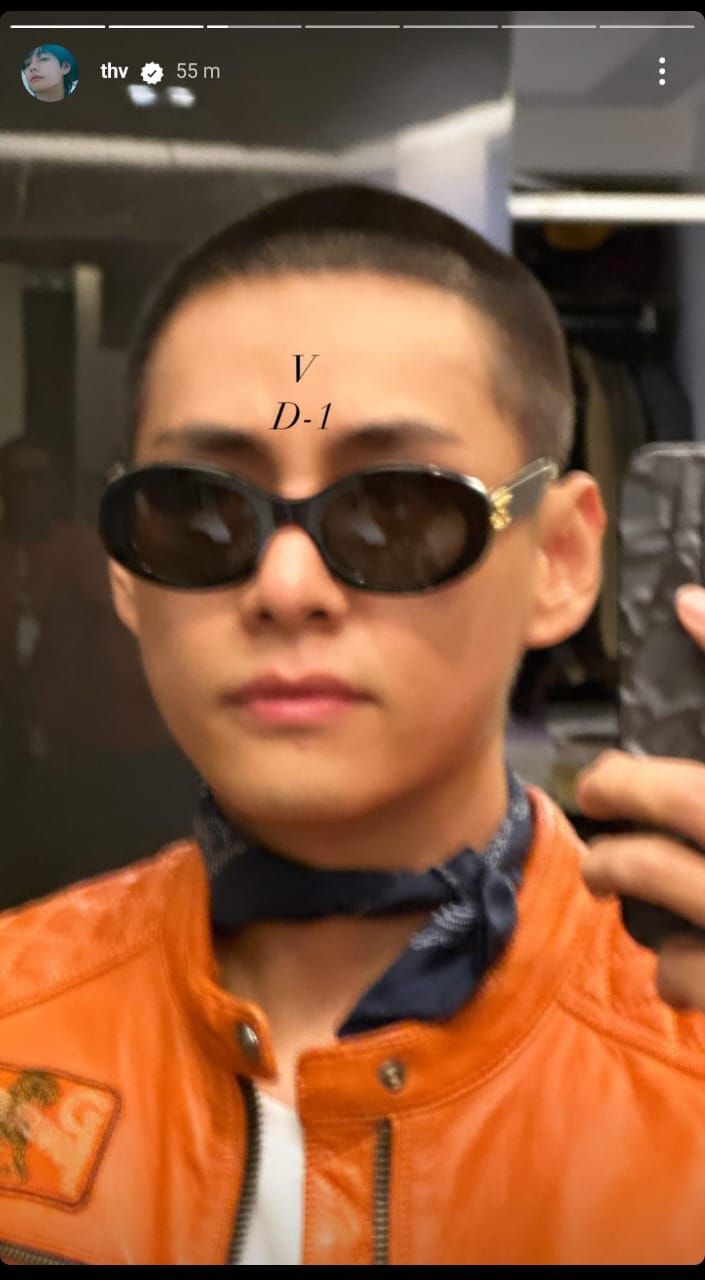 "D-1," tulis V BTS, dilihat Senin (11/12/2023).