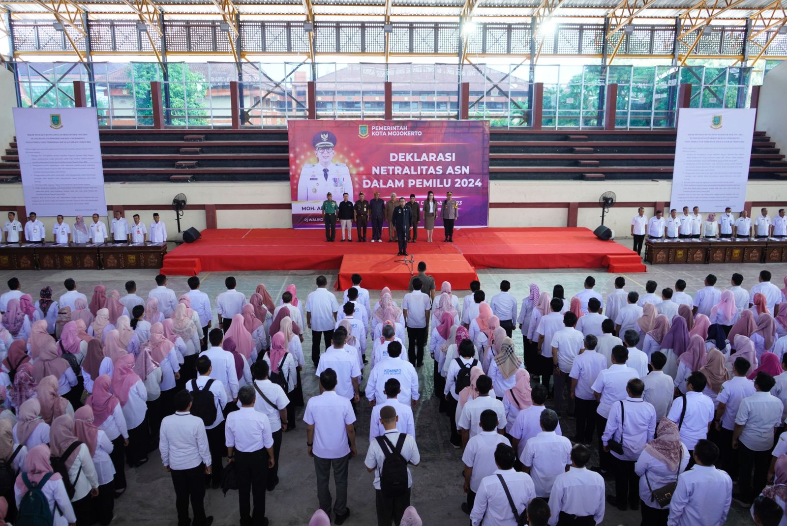 Apel gabungan tersebut diikuti hampir 1.000 ASN di Lingkungan Pemerintah Kota (Pemkot) Mojokerto. Selain pembacaan deklarasi netralitas ASN, dalam apel ini juga dilakukan penandatangan pakta integritas oleh seluruh Kepala Organisasi Perangkat Daerah (OPD) di Lingkungan Pemerintah Kota Mojokerto.