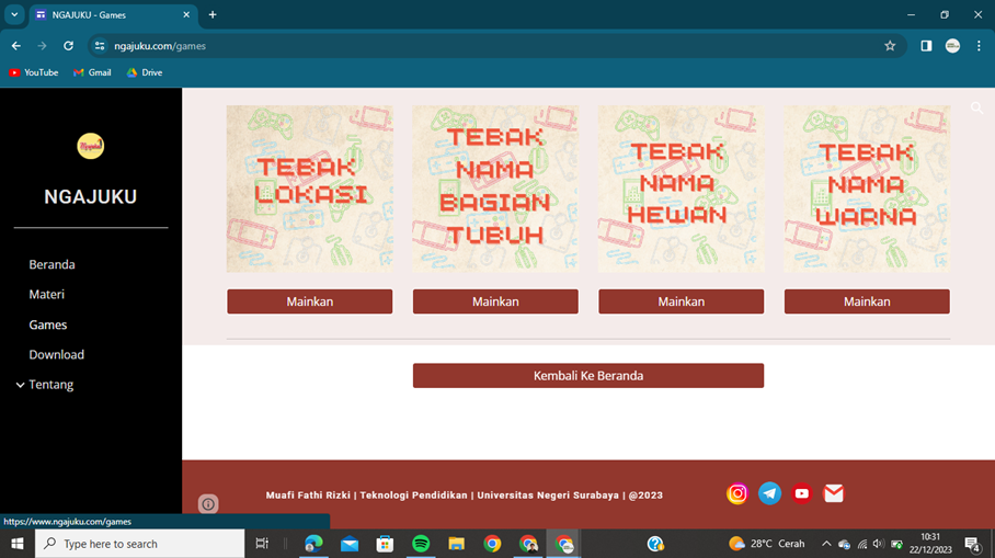 SURABAYAPAGI, Surabaya - Langkah inovatif dalam bidang teknologi pendidikan hadir di SDN Kantan Muara 5 melalui pengembangan E-Learning Bahasa Dayak Ngaju. Sebuah inisiatif yang diprakarsai oleh Muafi Fathi Rizki, mahasiswa Jurusan Teknologi Pendidikan angkatan 2020 dari Universitas Negeri Surabaya.