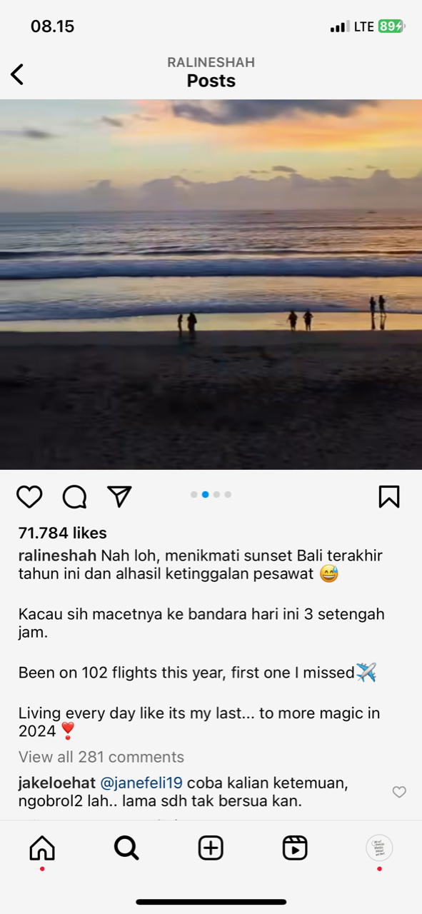 Di kolom komentar, banyak yang juga berbagi pengalaman saat menjadi korban kemacetan di Bali. Namun tidak sedikit juga yang justru fokus pada jumlah penerbangan Raline Shah.