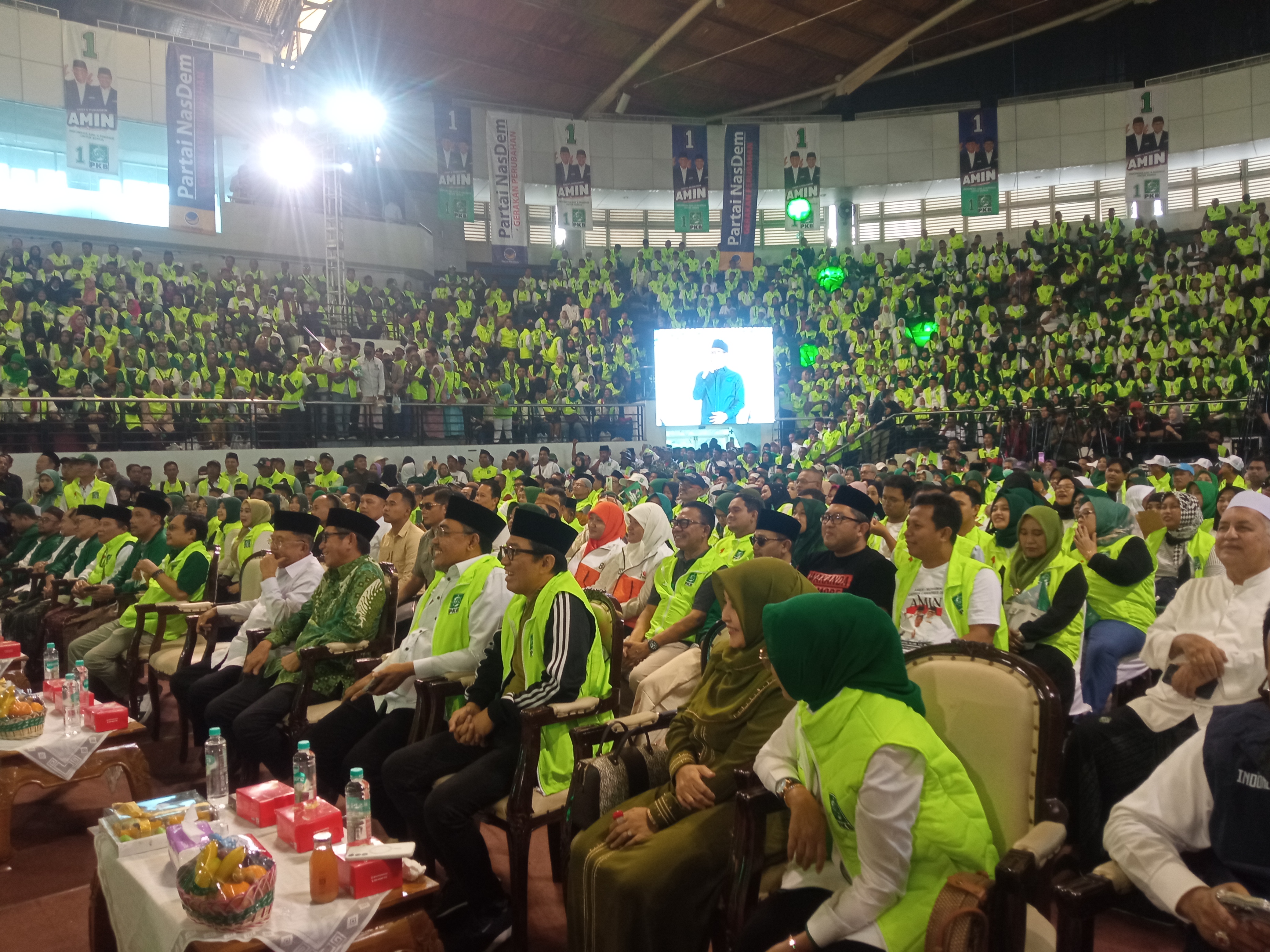 "Saya yakin AMIN menang, terutama dengan dukungan partai koalisi PAN dan PKS," ujarnya, sebelum diperbaiki oleh ratusan kader yang meramaikan acara dengan seragam hijau neon.