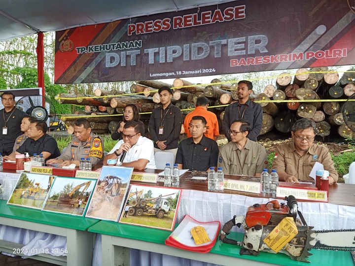 "Ungkap kasus ini berawal dari adanya informasi dugaan tindak pidana di bidang Kehutanan di Desa Tumbang Baloi, Kabupaten Murung Raya, Provinsi Kalimantan Tengah," kata Nunung panggilan akrab Dirtipidter Bareskrim Polri, saat rilis ungkap kasus didampingi oleh Kombes Pol Feby D.P Hutagalung, Kasubdit III Dit Tipidter Bareskrim Polri, Kabid Humas Polda Jatim Kombes Pol Dirmanto, Dirkrimsus Polda Jatim Kombes Pol Luthfie Sulistiawan, Kapolres Lamongan AKBP Bobby Adimas Candra Putra, serta Kepala Seksi Wilayah II Surabaya serta Kepala Dinas Kehutanan Provinsi Jatim.
