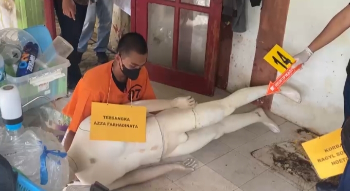 Dalam rekonstruksi yang dipimpin Kasat Reskrim AKP Hendro Utaryo SH MH, tampak tersangka melakukan peragaan peragaan saat melakukan dari perencanaan pembantaian terhadap korban Ragil 50 dan Luciani 53 sampai meminta tolong warga untuk di carikan Grab menghantar ke Terminal, juga pelaku mengaku berasal dari Kab Lamongan hal itu sesuai dengan keterangan tersangka AF saat dilakukan pemeriksaan penyidik juga dari hasil Forensik RS.Bhayangkara tentang kondisi Jasad dua korbanya.