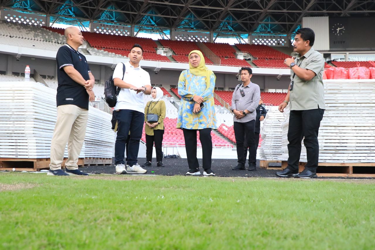 Selanjutnya, saat di dalam Stadion Utama GBK, Khofifah juga meminta kepada para pekerja Event Organizing (EO) untuk berhati hati pada saat melakukan pembongkaran khususnya pada area rumput stadion. Ia mewanti jangan sampai rumput stadion GBK rusak.