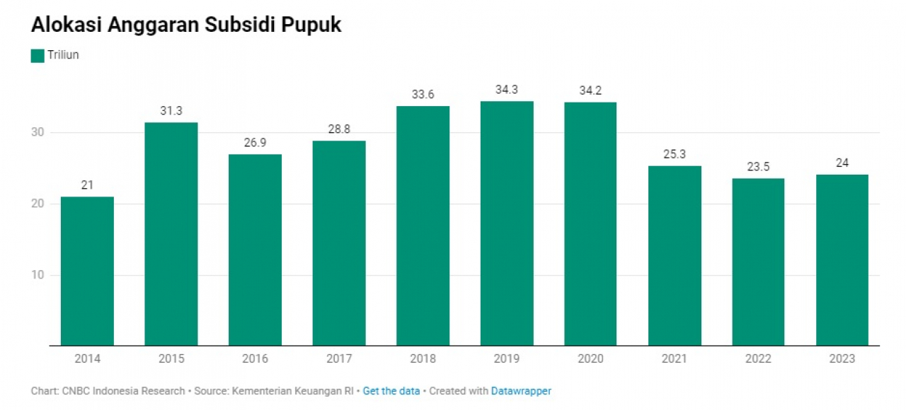 Menilik faktanya, menurut Kementerian Keuangan (Kemenkeu) anggaran subsidi memang meningkat di era Presiden Joko Widodo (Jokowi). Berdasarkan data di atas sejak presiden Jokowi menjabat pada Oktober 2014 anggaran subsidi pupuk langsung melesat. Namun sejak 2019 mulai menurun drastis hingga 2022 dan naik lagi 2023. jk-01/dsy