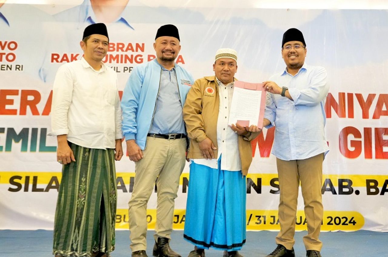SURABAYAPAGI.COM, Surabaya - Lebih dari 1.000 guru dan kepala madradah diniyah (madin) se Kabupaten Banyuwangi memberikan dukungan kepada paslon 02 Prabowo Subianto-Gibran Rakabuming Raka.