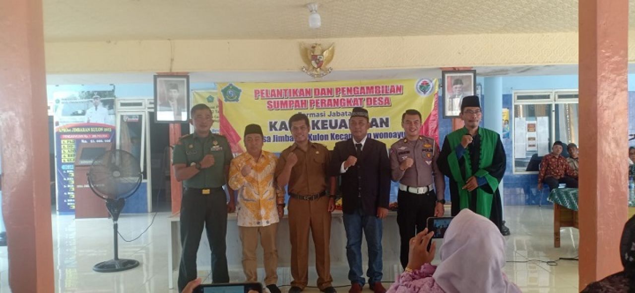 SURABAYAPAGI.COM, Sidoarjo - Kepala Desa Jimbaran Kulon Kecamatan Wonoayu resmi melantik satu perangkat desa baru. Pelantikan tersebut dihadiri Kapolsek Wonoayu, Kades Jimbaran Kulon, Danramil, Camat Wonoayu dan jajaranya, Babinsa, Bhabinkamtibmas, Kepala KUA. BPD dan tamu undangan pada Kamis, (1/2) di Pendopo Balai desa Jimbaran Kulon.