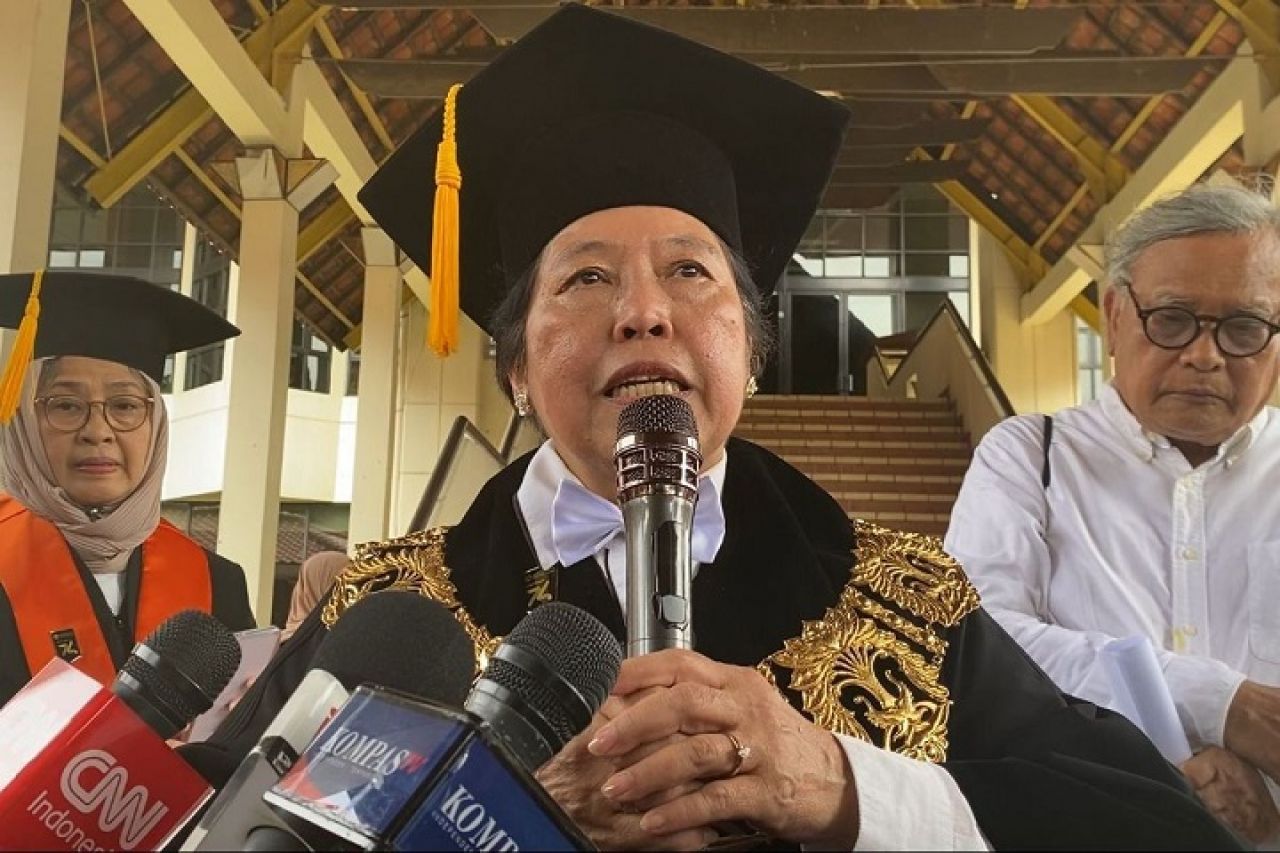 "Berdasarkan ruh kebebasan akademik yang kami punya, kami berdiri di sini mengajak warga dan alumni Universitas Indonesia untuk segera merapatkan barisan," kata Ketua Dewan Guru Besar Universitas Indonesia, Harkristuti Harkrisnowo, saat membacakan deklarasi yang bertajuk 'Genderang Universitas Indonesia Bertalu Kembali', di Rotunda, UI, Kota Depok, Jumat (2/2/2024).