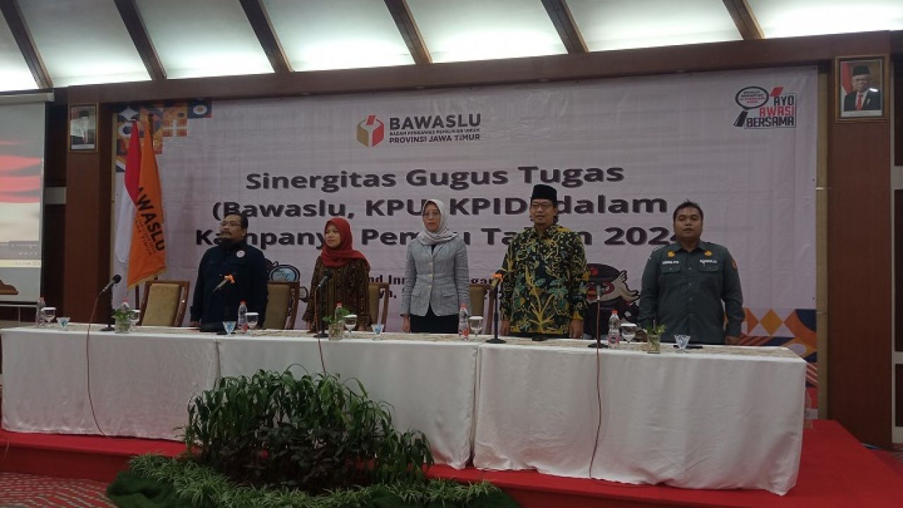 SURABAYAPAGI.COM, Surabaya - Bawaslu Jawa Timur bersama KPU dan KPID Jatim menggelar rapat koordinasi sinergitas gugus tugas dalam rangka pengawasan kampanye Pemilu 2024.