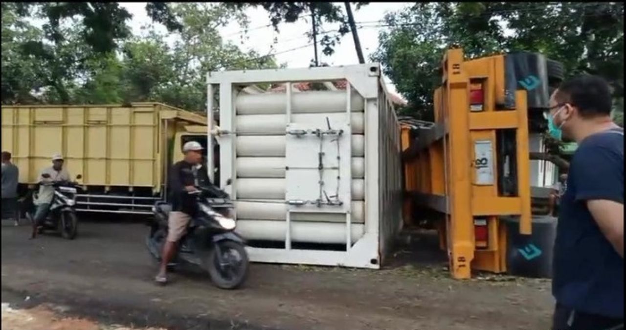 SURABAYAPAGI.COM, Bangkalan - Sebuah truk dengan muatan tabung oksigen terguling di Jalan Raya Kranggan, Galis, Bangkalan. Akibatnya, akses dari Bangkalan menuju Sampang dan sebaliknya terhambat. Bahkan, terjadi kemacetan hingga mencapai 4 kilometer.