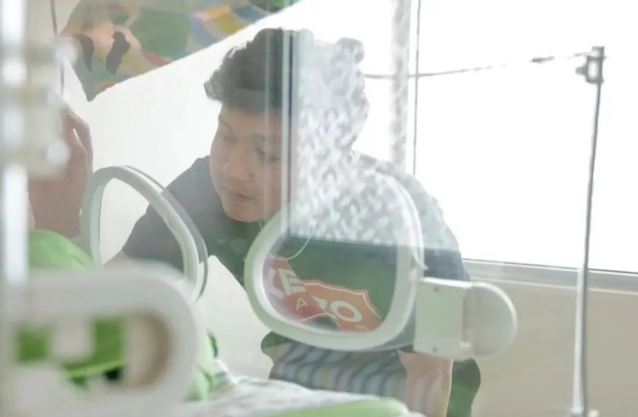 “Walau siang ini cah Ayu masih harus berjuang di dalam ruangan kecil, dengan beberapa selang di badannya. Bapak kuat dek, adekpun begitu ya. Bismilah,” kata Denny Caknan.
