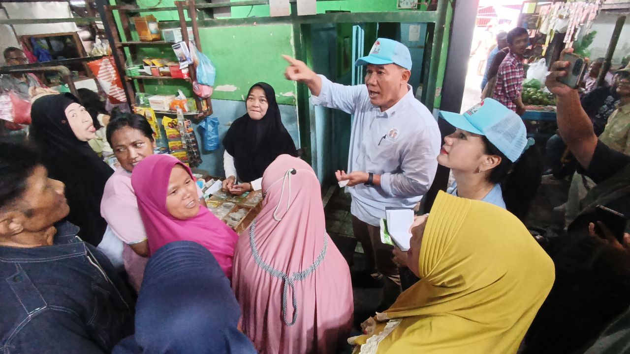SurabayaPagi, Surabaya - Calon Anggota Legislatif DPR RI dari Dapil Jatim Bambang Haryo Soekartono (BHS) kembali menyapa pedagang dengan blusukan di Pasar Simohilir, Jl. Simomulyo Baru, Surabaya, Rabu (7/2/2024).