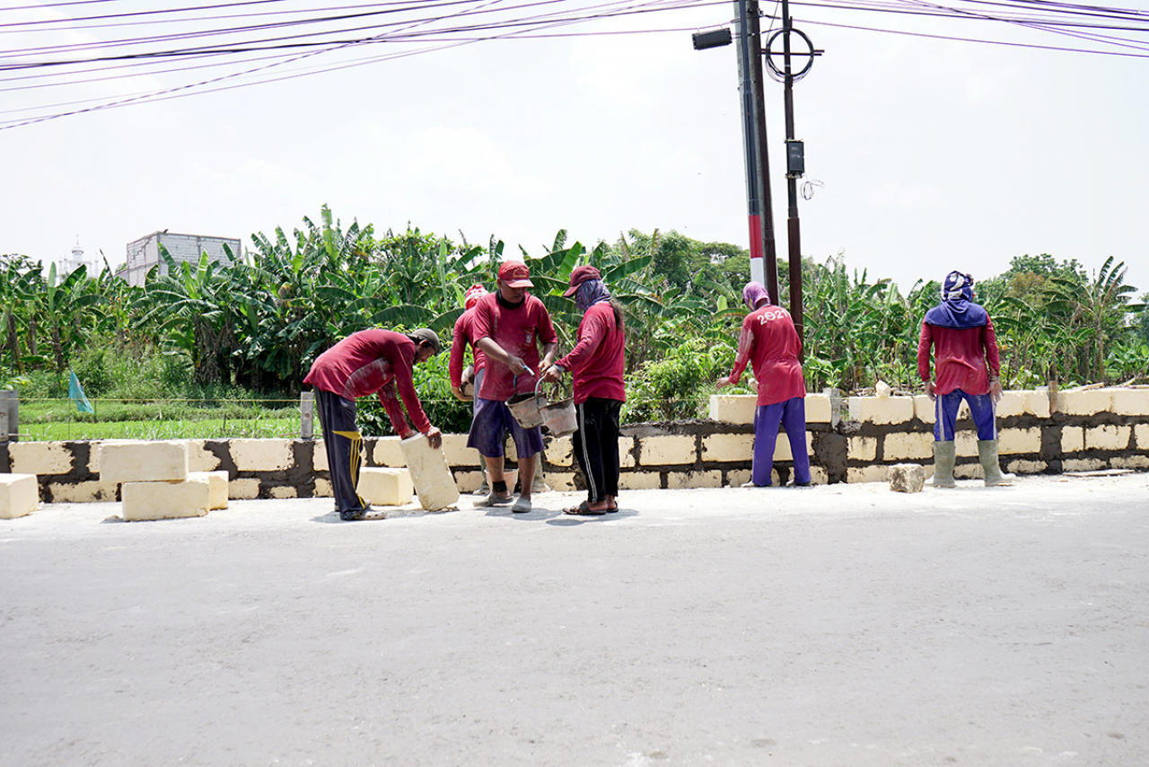 Menurutnya, dinding tanggul harus dibangun dengan pondasi yang kuat agar tidak mudah roboh. Namun, untuk mengantisipasi hujan yang bisa menyebabkan banjir, sandbag dipasang terlebih dahulu sebagai pengaman sementara di Pakal Madya.