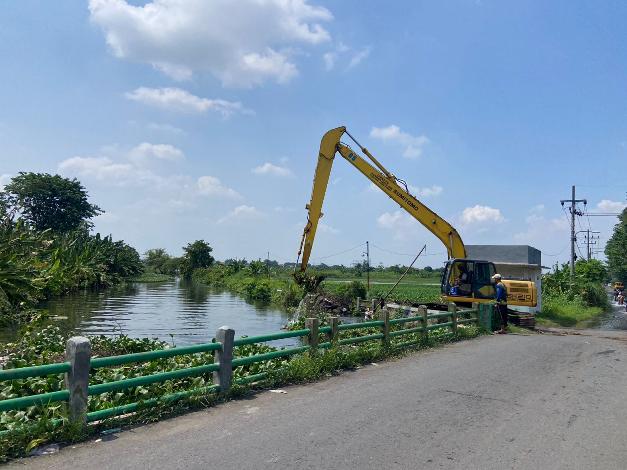 SURABAYAPAGI, Sidoarjo - Penanganan banjir yang melanda Desa Trosobo dan beberapa titik di Kecamatan Taman, Kabupaten Sidoarjo terus berlanjut. Normalisasi Sungai Buntung menjadi fokus utama dengan pembersihan eceng gondok dan sampah menggunakan alat berat.