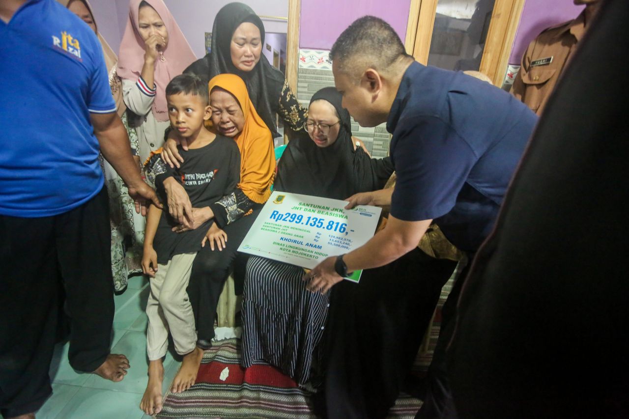 "Jadi ahli waris yakni istri korban mendapatkan santunan dari BPJamsostek dan dari Pemkot Mojokerto. Semoga bantuan ini sedikit bisa meringankan," katanya.