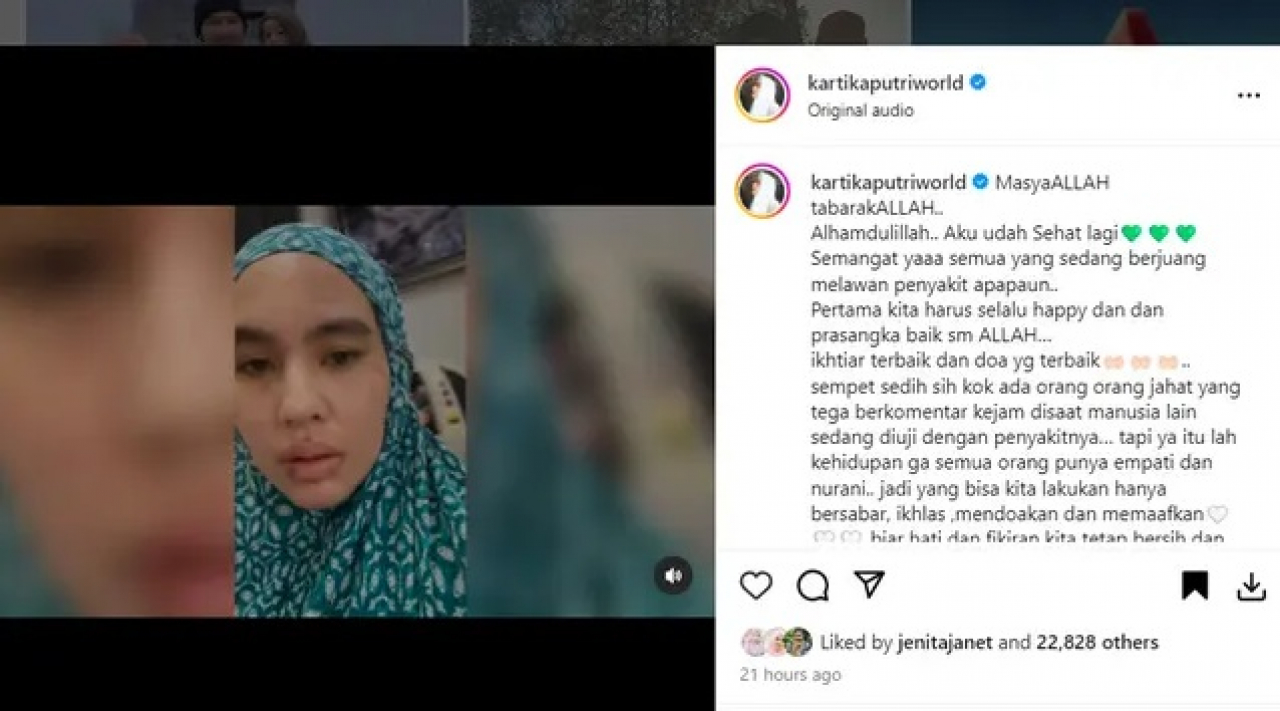 Dalam video terbaru yang diunggah ke akun Instagramnya, Kartika Putri lantas mencurahkan isi hatinya soal komentar-komentar jahat yang pernah dialamatkan pada dirinya saat sakit.