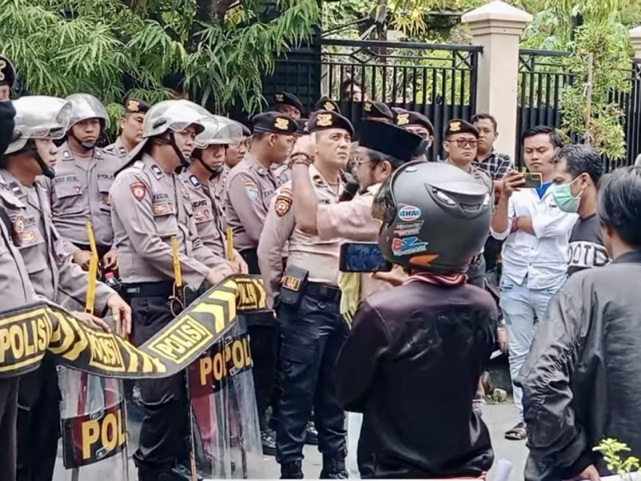 Upaya menyampaikan aspirasi tersebut terhalang petugas yang siaga di gang masuk arena rekapitulasi, sehingga massa secara bergantian melakukan orasi di luar arena rekapitulasi.